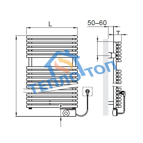- Технические характеристики Полотенцесушитель BTOW75 500 R FKS RAL 9016 (правый):
