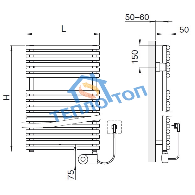 - Технические характеристики Полотенцесушитель BTW115 500 R FKS RAL 9016 (правый):