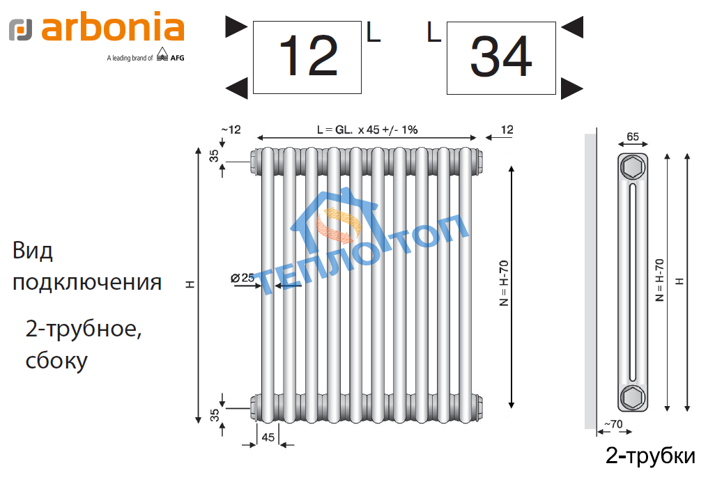 - Вертикальный радиатор Arbonia 2180/04 N12 3/4 RAL 9016 (белый) представляет собой высокий и узкий радиатор, обеспечивающий экономичное и эффективное отопление любых помещений. Актуальный дизайн вертикальных двухтрубчатых радиаторов Arbonia легко позволяет им стать частью любого интерьера, как в классическом, так и в современном стиле, а если правильно подобрать цвет радиатора, они смогут быть либо абсолютно незаметными, либо, наоборот, превратиться в стильный элемент каждого помещения. На склад радиаторы поставляются в стандартном белом исполнении (оттенок 9016 по шкале RAL), но на заказ их можно покрасить в любой другой цвет вышеуказанной шкалы. Высокий радиатор 2180 4 секции может эффективно обогреть 10 м2 площади, его можно использовать в многоквартирных домах, а также в загородных домах и других помещениях. На точный результат расчетов оказывает влияние целый ряд факторов: