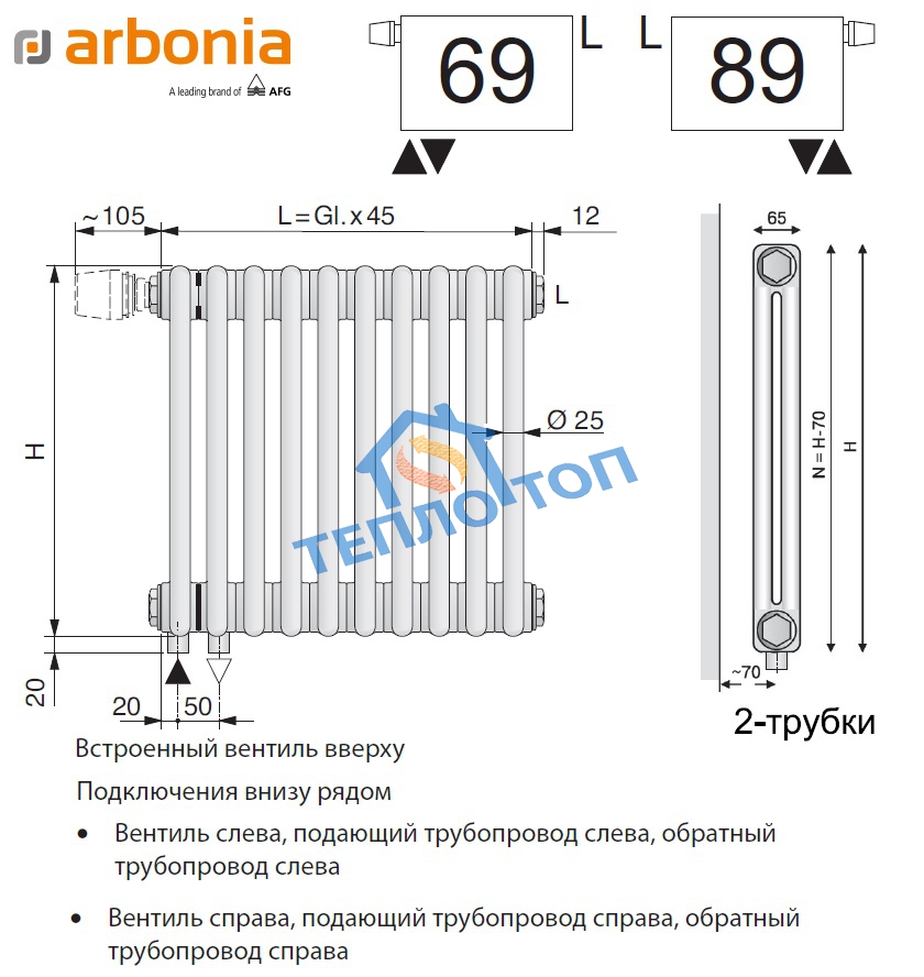 - Вертикальный радиатор Arbonia 2180/04 с нижней подводкой RAL 9016 (белый) представляет собой высокий и узкий радиатор, обеспечивающий экономичное и эффективное отопление любых помещений. Актуальный дизайн вертикальных двухтрубчатых радиаторов Arbonia легко позволяет им стать частью любого интерьера, как в классическом, так и в современном стиле, а если правильно подобрать цвет радиатора, они смогут быть либо абсолютно незаметными, либо, наоборот, превратиться в стильный элемент каждого помещения. На склад радиаторы поставляются в стандартном белом исполнении (оттенок 9016 по шкале RAL), но на заказ их можно покрасить в любой другой цвет вышеуказанной шкалы. Высокий радиатор 2180 4 секции может эффективно обогреть 10 м2 площади, его можно использовать в многоквартирных домах, а также в загородных домах и других помещениях. На точный результат расчетов оказывает влияние целый ряд факторов: