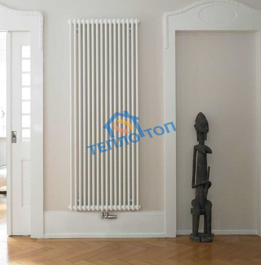 - Вертикальный радиатор Zehnder Z-2180-7 N69 1/2" нижнее подключение - этот немецкий высокий радиатор отопления от компании Zehnder зарекомендовал на рынке себя, как одни из самых надежных и качественных. Радиаторы Zehnder Charleston являются первыми в мире трубчатыми радиаторами, были они изобретены в 1930 году и до сих пор не утратили популярности. Являясь классической моделью, этот высокий радиатор имеет простое устройство: состоит из двух горизонтальных коллекторов толщиной стального листа 1,5 мм, между которыми расположены трубки диаметром 25 мм, толщина стенки трубы 1,25 мм, покрываются эмалью цвета RAL 9016 способом горячего обжига. CH 2180 - 7 N69 1/2" Ral 9016 хорошо обогревает помещение: металл быстро нагревается и так же быстро остывает, что позволяет легко регулировать температуру в помещении с помощью термостатического вентиля. Zehnder Charleston предлагает разнообразие форм и размеров, а цветовая гамма вертикальных радиаторов включает множество различных оттенков, что позволяет подобрать высокую батарею в любой интерьер.
