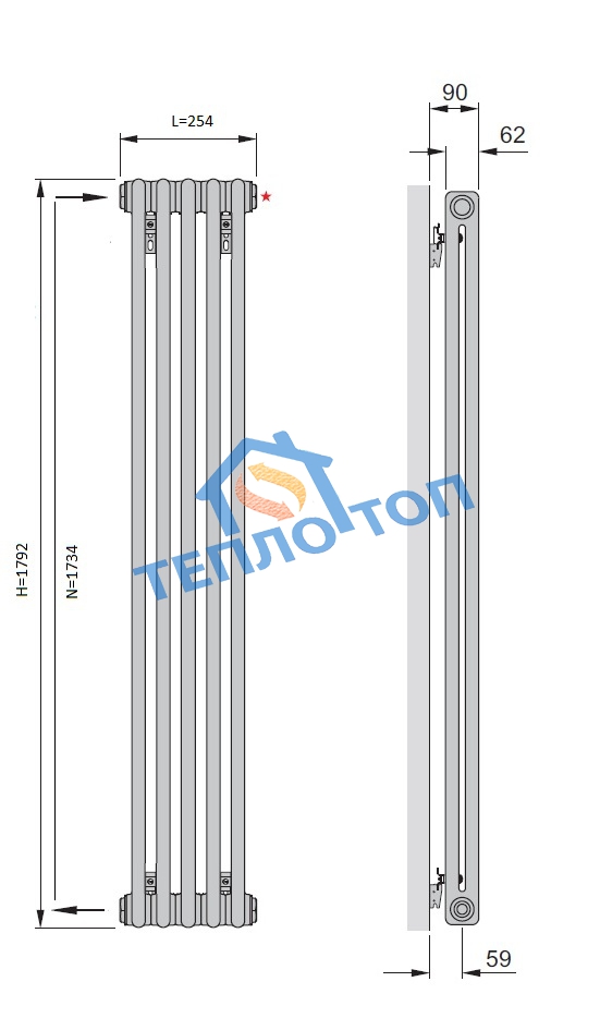- радиатор, грунтованный и покрытый порошковой эмалью цвета RAL 1013 жемчужно-белый