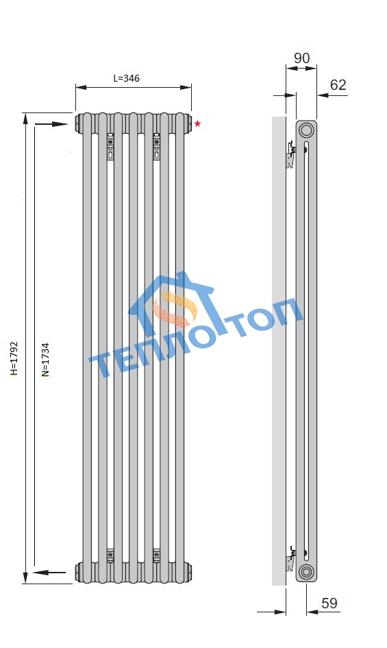- радиатор, грунтованный и покрытый порошковой эмалью цвета RAL 1013 жемчужно-белый