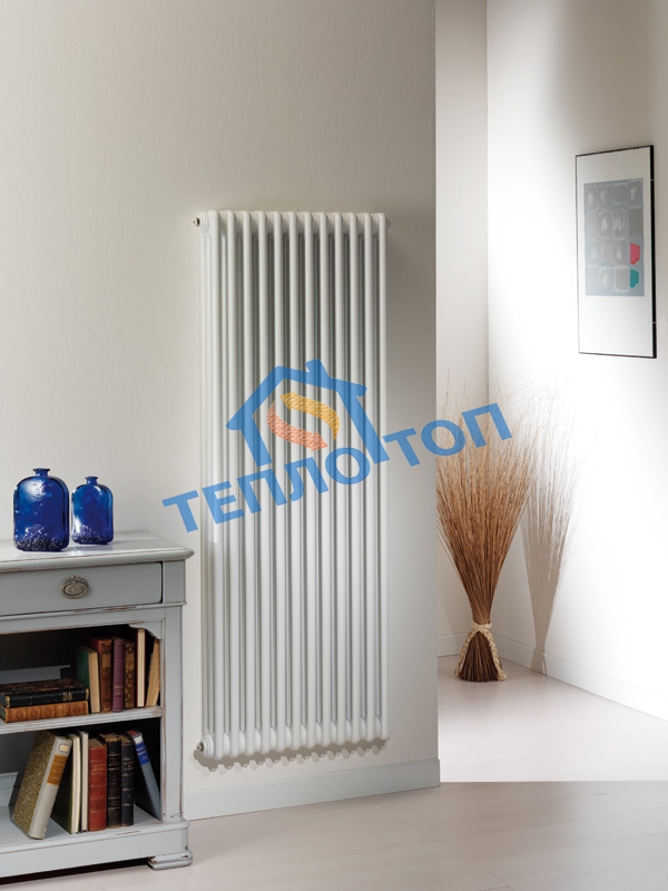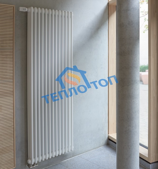 - Вертикальный радиатор Zehnder Z-3180-9 N69 1/2″ нижнее подключение — этот немецкий высокий радиатор отопления от компании Zehnder зарекомендовал на рынке себя, как одни из самых надежных и качественных. Радиаторы Zehnder Charleston являются первыми в мире трубчатыми радиаторами, были они изобретены в 1930 году и до сих пор не утратили популярности. Являясь классической моделью, этот высокий радиатор имеет простое устройство: состоит из двух горизонтальных коллекторов толщиной стального листа 1,5 мм, между которыми расположены трубки диаметром 25 мм, толщина стенки трубы 1,25 мм, покрываются эмалью цвета RAL 9016 способом горячего обжига. CH 3180 — 9 N69 1/2″ Ral 9016 хорошо обогревает помещение: металл быстро нагревается и так же быстро остывает, что позволяет легко регулировать температуру в помещении с помощью термостатического вентиля. Zehnder Charleston предлагает разнообразие форм и размеров, а цветовая гамма вертикальных радиаторов включает множество различных оттенков, что позволяет подобрать высокую батарею в любой интерьер.