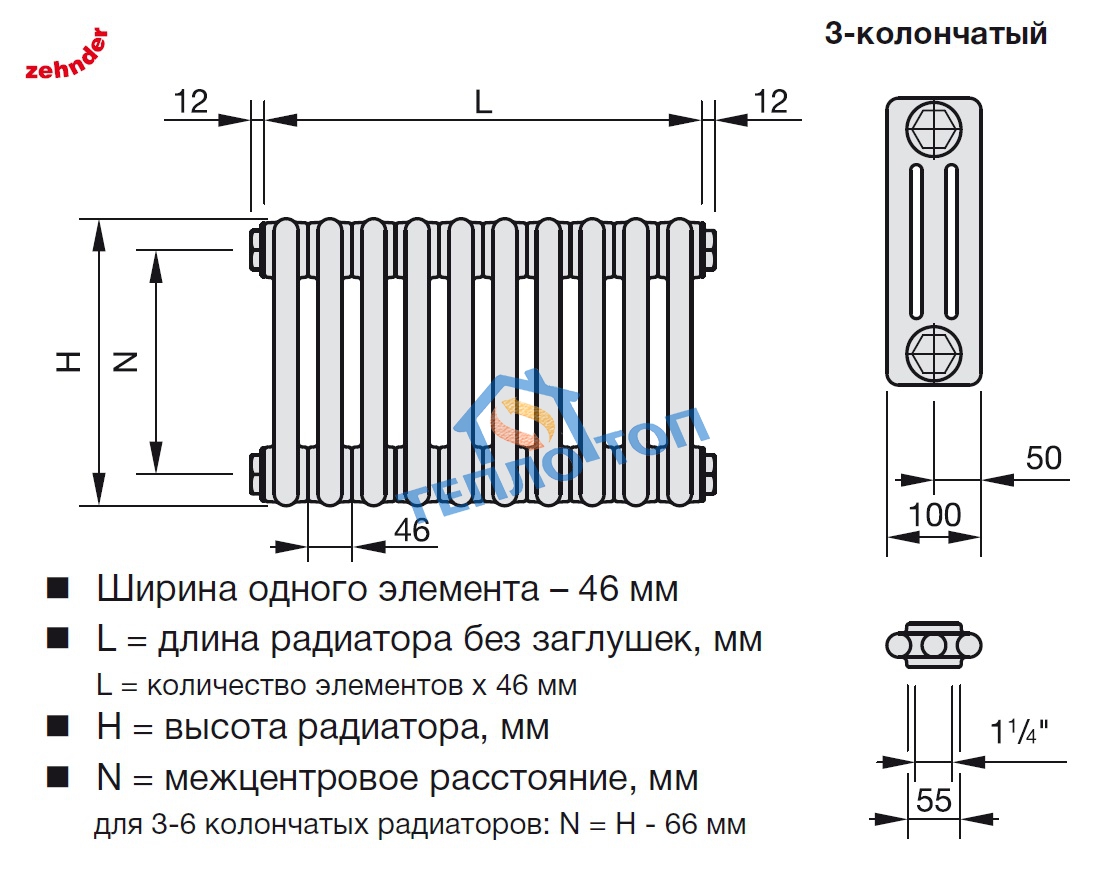- Технические характеристики Радиатор Zehnder Z-3057-18 V001 1/2"нижняя подводка, прозрачный лак (TL 0325):